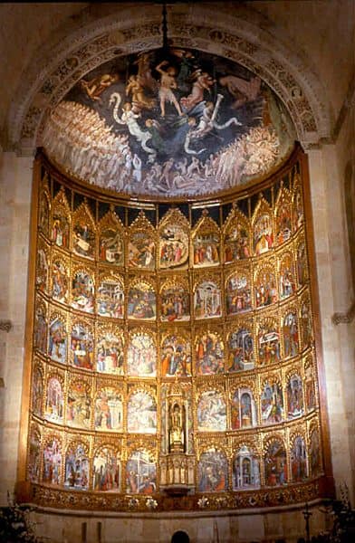 Las órdenes religiosas, especialmente dominicos, franciscanos y jesuitas, dejaron su impronta en la arquitectura salmantina. El Convento de San Esteban, iniciado en 1524, es uno de sus máximos exponentes. Su fachada plateresca, diseñada por Rodrigo Gil de Hondañón, funciona como un gigantesco retablo que integra referencias bíblicas, doctrinales y numerosos elementos heráldicos.