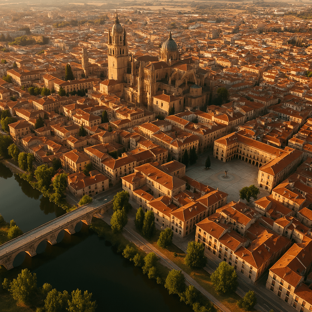 La ciudad de Salamanca, situada en el oeste de España, es conocida por su rica historia y su prestigiosa universidad, que es una de las más antiguas de Europa. Fundada en el siglo XII, la Universidad de Salamanca ha sido un centro de conocimiento y cultura, atrayendo a estudiantes de diversas partes del mundo. Su impresionante arquitectura, que combina estilos gótico, renacentista y plateresco, se refleja en edificios emblemáticos como la Casa de las Conchas y la Catedral Nueva, que son testigos del esplendor histórico de la ciudad.