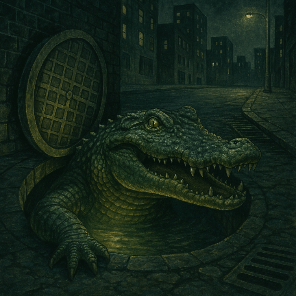 En los años 70, un excomisionado de obras públicas declaró ante la prensa que «no había evidencia de reptiles gigantes en la red de alcantarillas». Pero los trabajadores seguían contando sus historias: uno dijo haber visto un caimán de casi dos metros arrastrando un saco de basura, otro juró haber perdido a un compañero que “resbaló” y desapareció en un túnel tras un grito ahogado.