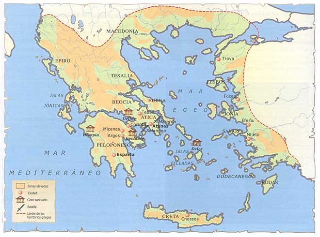 La geografía accidentada de Grecia impidió la formación de un Estado poderoso y unificado. En cambio, dio lugar a la formación de un conjunto de ciudades-estado independientes, ubicadas en distintas regiones y con un gobierno autónomo.