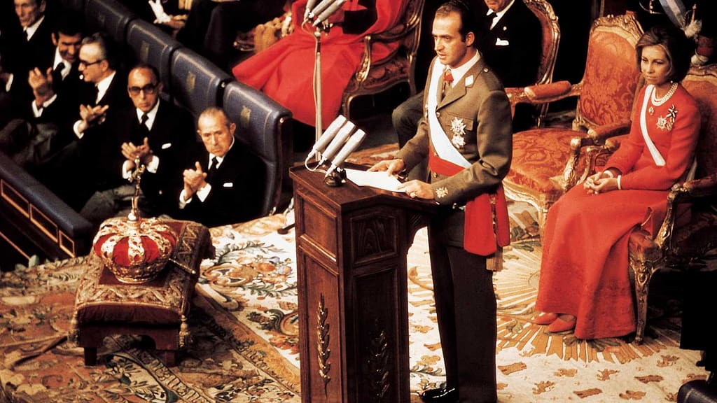 Tras la muerte de Franco, fue proclamado rey Juan Carlos I. Muchos pensaban que continuaría el régimen, pero sorprendió al impulsar reformas democráticas.