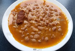 Abrimos la olla, si las alubias si están blandas, le añadimos si es necesario mas agua, ponemos al fuego, sin tapar la olla, cuando rompa a hervir echamos el arroz tapamos y dejamos cocer 5 minutos más.