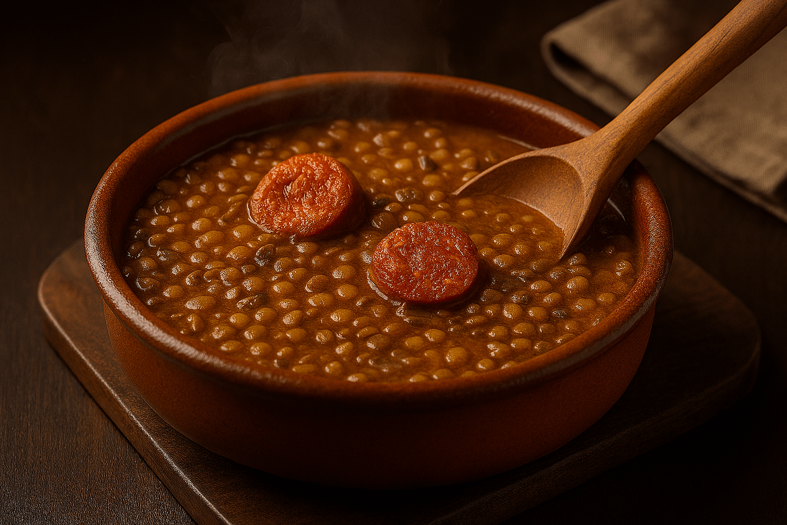 - • Cocina a fuego medio-bajo durante 45–60 minutos, removiendo de vez en cuando.• Si lo prefieres más espeso, puedes triturar parte del sofrito antes de añadir las lentejas.