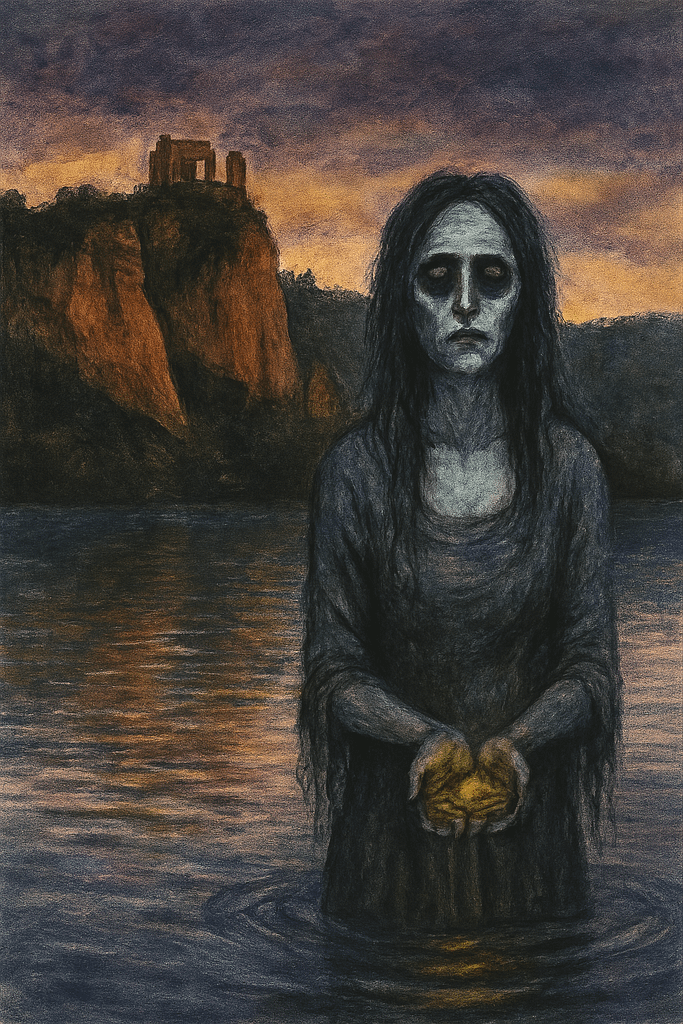 Según la tradición, fue una joven que se ahogó tras lanzarse al canal en un arrebato de desesperación. Su espíritu vuelve cada cierto tiempo, vagando entre la niebla de los amaneceres.