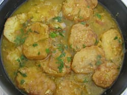 - Pela y corta las patatas en rodajas de 1 cm de grosor. Sálalas ligeramente.Reboza las patatas: pásalas por harina y luego por huevo batido.En una sartén con aceite caliente, fríe las patatas rebozadas hasta que estén doradas por ambos lados. Resérvalas en papel absorbente.En una cazuela (mejor si es ancha), sofríe la cebolla picada y los ajos laminados hasta que estén dorados.Añade una cucharada de harina y remueve. Incorpora el vino blanco y deja evaporar el alcohol unos minutos.Agrega las patatas fritas a la cazuela, cúbrelas con caldo o agua, y añade un poco de azafrán o colorante si lo deseas.Cocina a fuego medio durante unos 20-25 minutos, hasta que las patatas estén tiernas y la salsa haya espesado ligeramente.Espolvorea con perejil fresco picado y sirve caliente. ¡¡¡Buenísimas!!! Que os gusten.