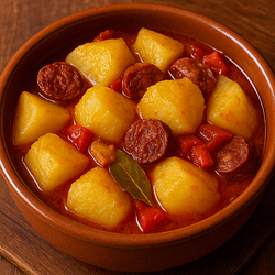 - Cocinar: Cocina a fuego lento, sin tapar, durante unos 25–30 minutos, hasta que las patatas estén tiernas y el caldo haya espesado.