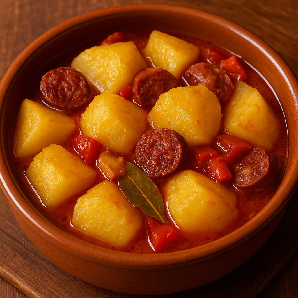 • Cocina a fuego medio durante 45–60 minutos, hasta que las patatas estén tiernas y el caldo haya espesado.