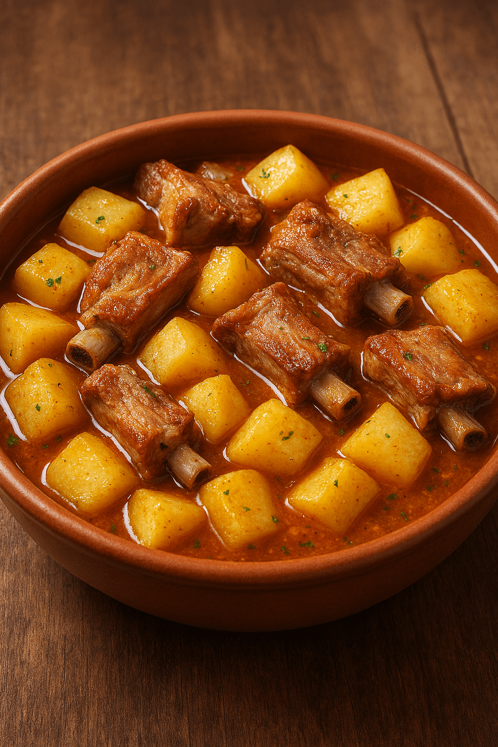 Las patatas con costillas de cerdo son un guiso tradicional, sabroso y reconfortante, perfecto para los días frescos. Aquí tienes la receta clásica, tal como se prepara en muchos hogares